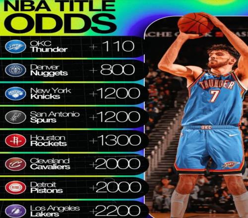1月5日,雅虎更新NBA最新夺冠赔率,目前雷霆以+110(100得110)遥遥领先,掘金和尼克斯紧随其后!